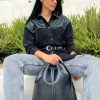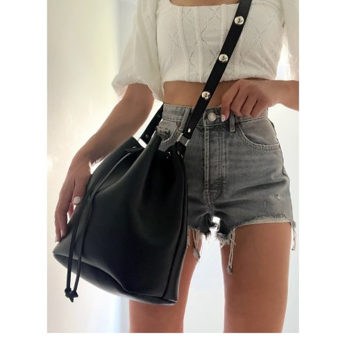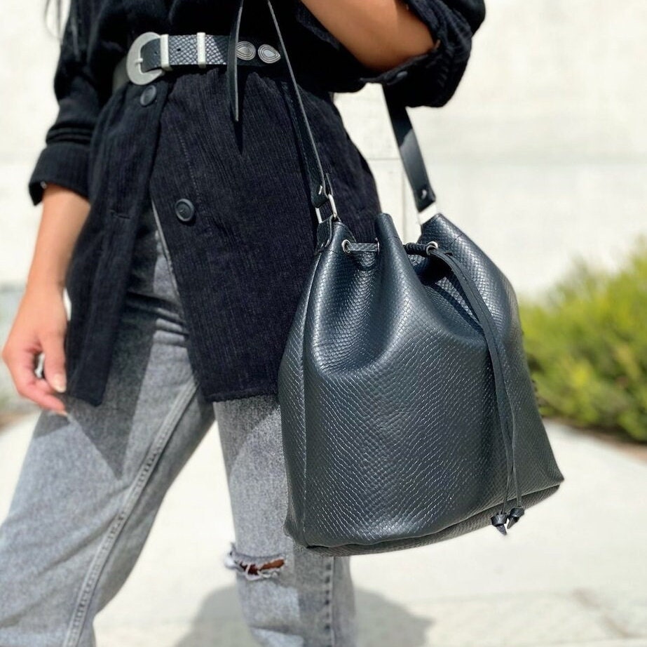 Black Leather Bucket Bag Crossbody Shoulder Purse Made