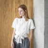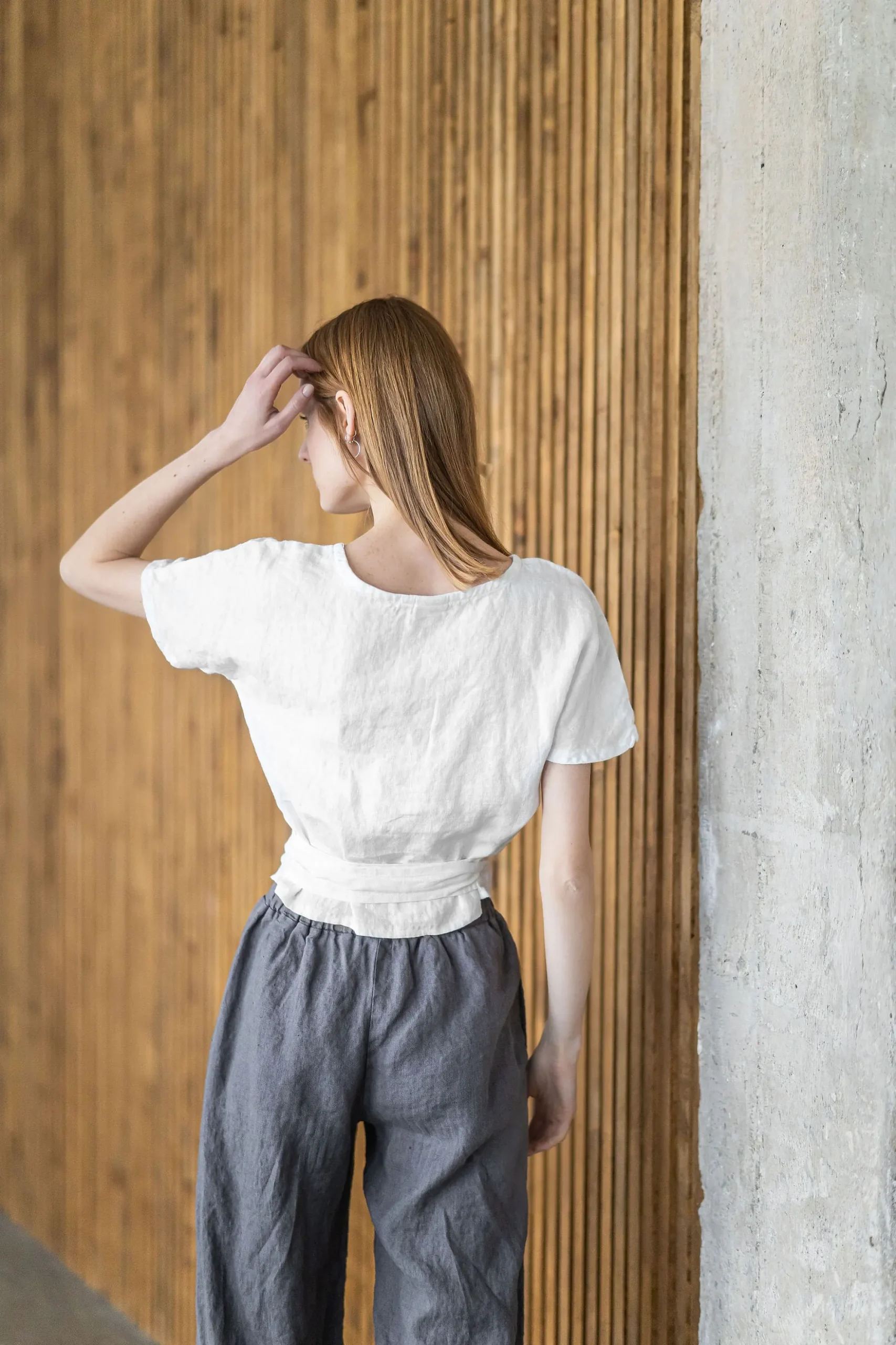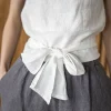 • Short linen blouse with long waist tie