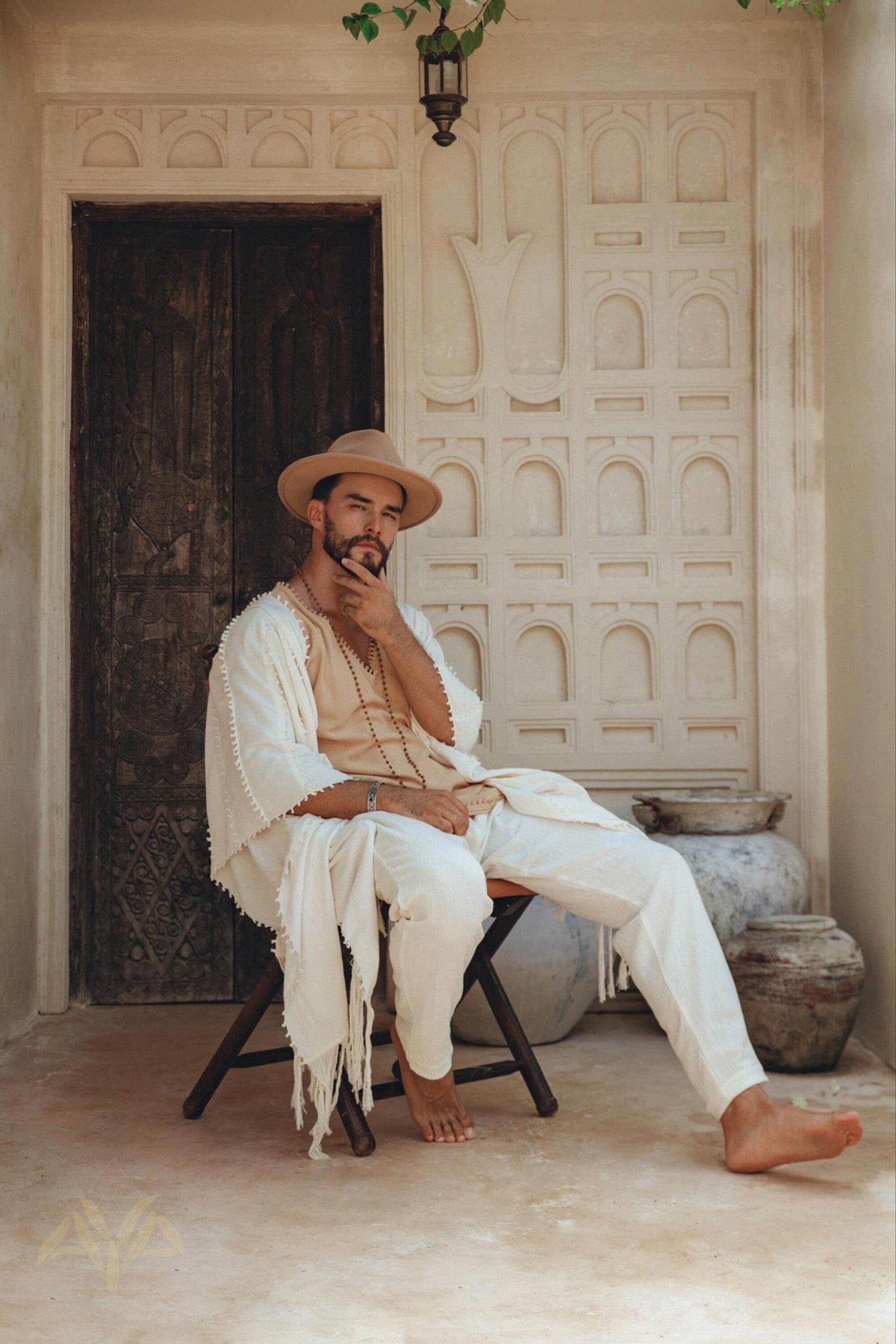 Off White Long Cotton Pants Men Wide Leg